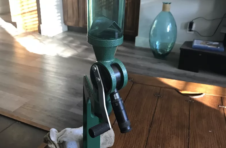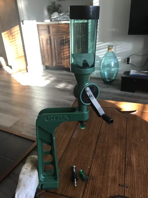 Rcbs powder measure with rcbs stand and micrometer adjustment screw and baffle