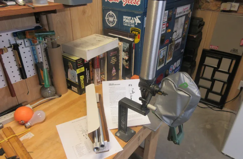 Lyman # 55 powder measure will handle smokeless as well as black powder, has a brass micrometer drum, aluminum powder container w/baffle, aluminum drop tubes 2 x 12" with connector. It also comes with a Lyman heavy duty bench mount that is considerably more stable than the factory clamp on the measure body. This unit has seen very little use, and is in excellent + condition. $250 shipped (EMT). No trades or offers, thank you.