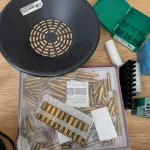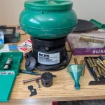 Presse progressive RCBS Pro 2000 avec équipements et quelques pièces de rechange. Tumbler, trimmer, égreneur ect. Voir photos et vidéos.
