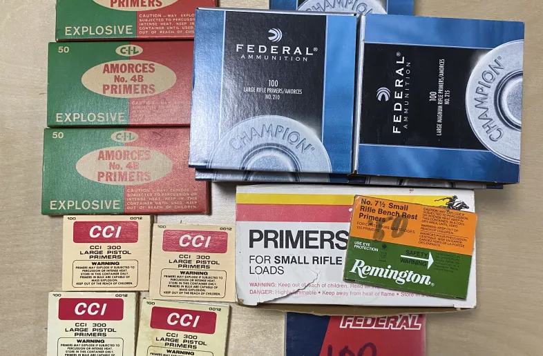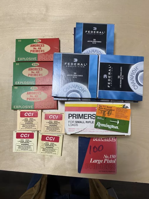 Hello, as per the photo, i have 150 CIL’s, 1000 Winchester small rifle, 400 CCI large pistol, older primers. $5/100