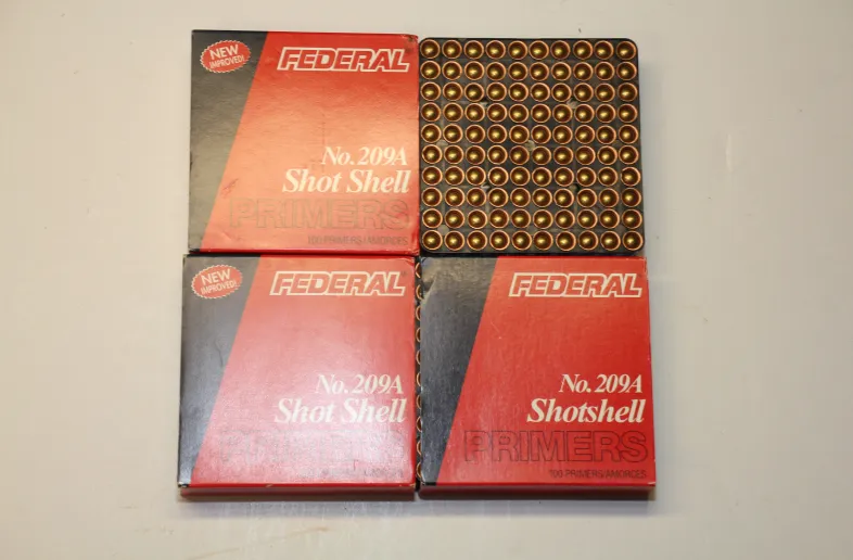 3 boxes (30 pieces) of Federal Shot Shel primers # 209A and 1 box od CIL#4B (49pieces) and several miscellaneous primers . $50 for all , shipping $20 .