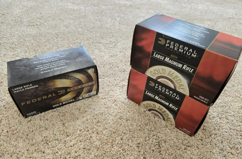 I have a couple boxes of federal large rifle match and large rifle magnum match primers for sale: