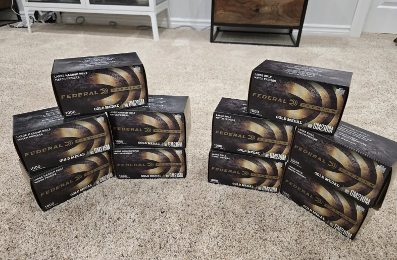 -Fed GM215M gold medal large rifle magnum primers: $300/brick of 1000
