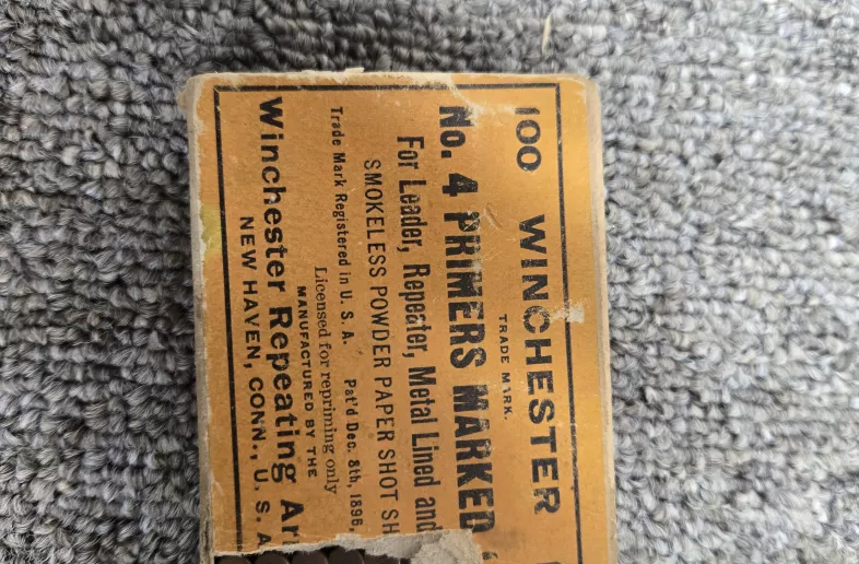Box of vintage winchester no.4 marked "win" primers.