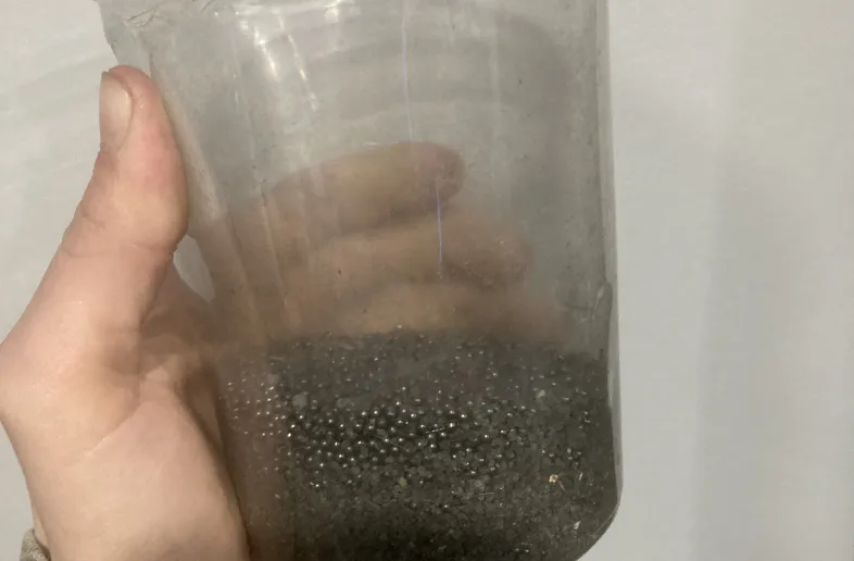 Probably 4 or 5 pounds of birdshot not sure on shot size all lead and a little bit of gun powder in it