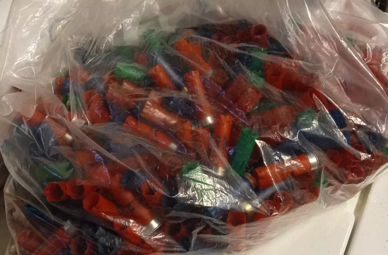 A few hundred shotgun hulls, a mix of brands. Winchester, Rio, Kent, Challenger, maybe some others. One or two might be flattened from being stepped on, this is reflected in the price ;)