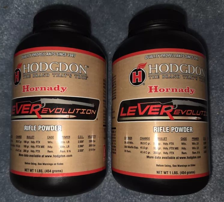 I have two new 1lb containers of Hodgdon Leverevolution powder for sale. Stored cool and dry in an air conditioned home. Hunting season is coming up and my reloads were mocked up with win748 which i have a ton of so this is surplus to my needs. Get ready for bear and deer season by getting your 30-30 dialed!