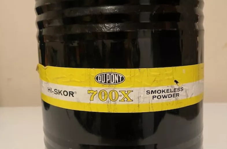 One sealed 12lb keg of DuPont 700X smokeless powder. $720