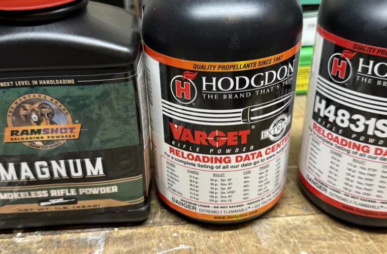 1 pound each of Varget, H4831SC, and Ramshot Magnum