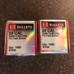 NOE 4 cavity bullet mold for . 250 caliber 260-105-FN-D2, approx 1,800 .25 caliber Hornady gas checks, Lyman .258 sizer die and correct for mold NOE top punch plus approx 60 Speer 87 grain .257 bullets.