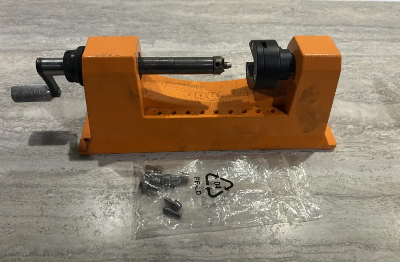 Very good condition lyman case trimmer with factory pilot set. No need for shellholders on this trimmer.