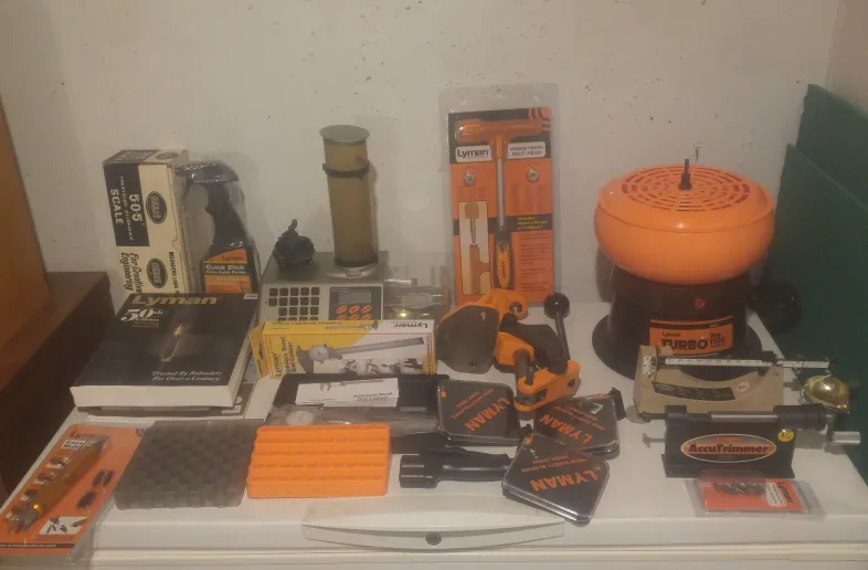 For sale is a complete reloading kit which is mostly Lyman products. It includes most things a guy would need to get started in the hobby.