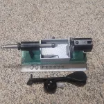 Trimmer comes with a 3d printed trimmings tray and a quick release bench mount. The cutting spindle can be mounted too a power drill.