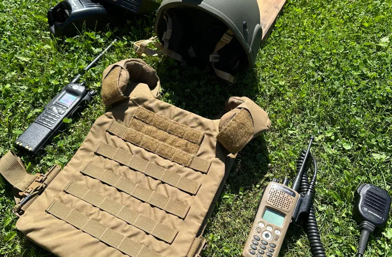 Gear drop, plate carrier helmet armour vest radio Motorola PTT NIJ IIIa First tactical
