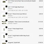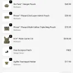 Size med , double pistol mag pouch, single pistol mag pouch, and 5.56 pincer mag pouch