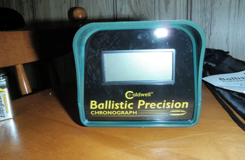 this chrono was used once to verify speed of one of my loads for moose rifle after that put away ,clean like new all components and carry bag in new condition