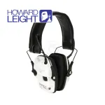 - Patented Air Flow Control technology allows for a slim earcup design that ensures your firearm stock has clearance while shooting. The padded headband features telescopic height adjustment for a comfortable, customized fit. An external audio jack lets you connect the shooting earmuff to music device or scanner or another audio source. The battery delivers approximately 350 hours of usage, and the automatic shut-off feature engages after 4 hours to help save battery life. All Howard Leight electronic earmuffs and safety eyewear are compatible for use with each other.