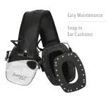 - When the electronic ear protection is switched on, it employs built-in directional microphones that amplify ambient sounds to a safe 82dB. This allows you to hear important commands on the range and crucial environment sounds when hunting. For additional shooting hearing protection, it also actively listens and automatically stops amplification when loud impulsive sounds like firearm discharges exceed 82dB.