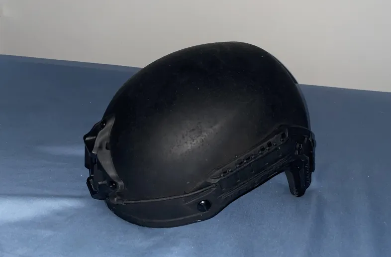 Has 7075 NVG mount and glass-reinforced polycarbonate rails with Padding and dial adjustment system.