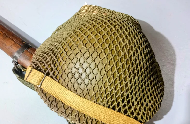 Comes with WW2 dated shell bandage and net is also WW2 Canadian, not the typical British style, this has a 2 tone camo on it.