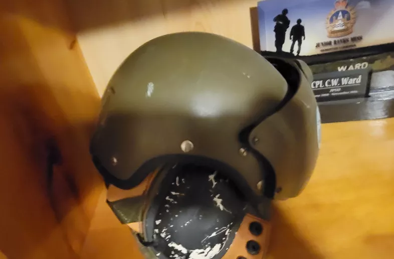Authentic CAF 408 helicopter pilot helmet. Built in radio and ear pro. Dark adjustable visor. Fits medium and large heads chin strap is adjustable. Keep it in your gun room like i did or use it for the real thing choice is yours.