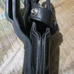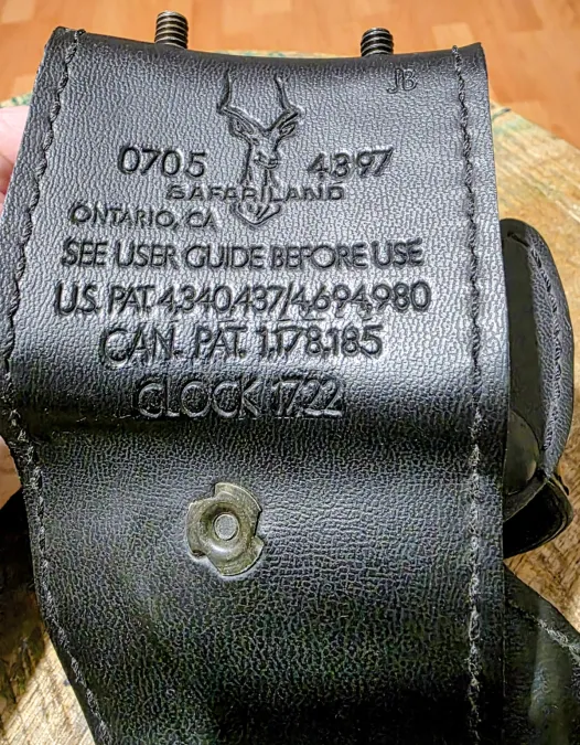 Authentic Safariland model 0705 active-duty holster for Glock 17 (9 mm) and Glock 22 (.40 S&W). USA-made, SafariLaminate body with suede-lined interior. Typical LE/security issue style from late-1990s to mid-2000s.