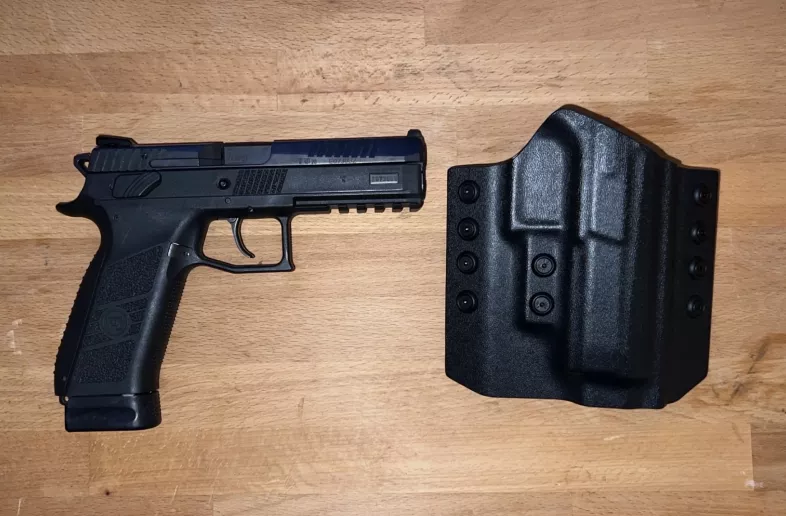 Like new! Profile is slim. Can work for many purposes, comps, and or general dry fire training. I’m assuming it’ll also work for airsoft.