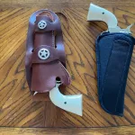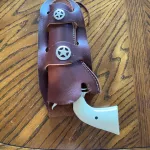 - Leather Holster with metal conchos. Fits Colt SAA and pellet revolvers. R.H. $20.00