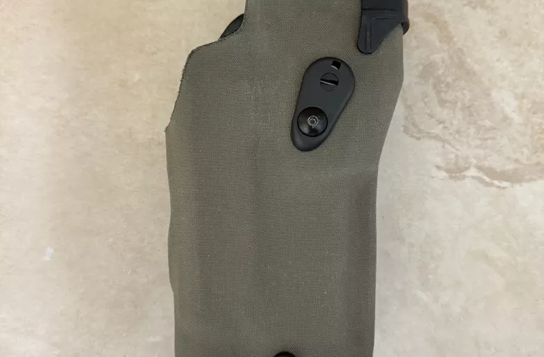 For sale is a Safariland 6390RDS holster custom fit for a Sig P320 X5 Legion with a weapon light. It was ordered from and modified by RDR Gear. Wrapped in Ranger Green cordura. Comes with an OT Defense Nub Mod to make activating the ALS system much easier, it’s a must for Safariland holsters.