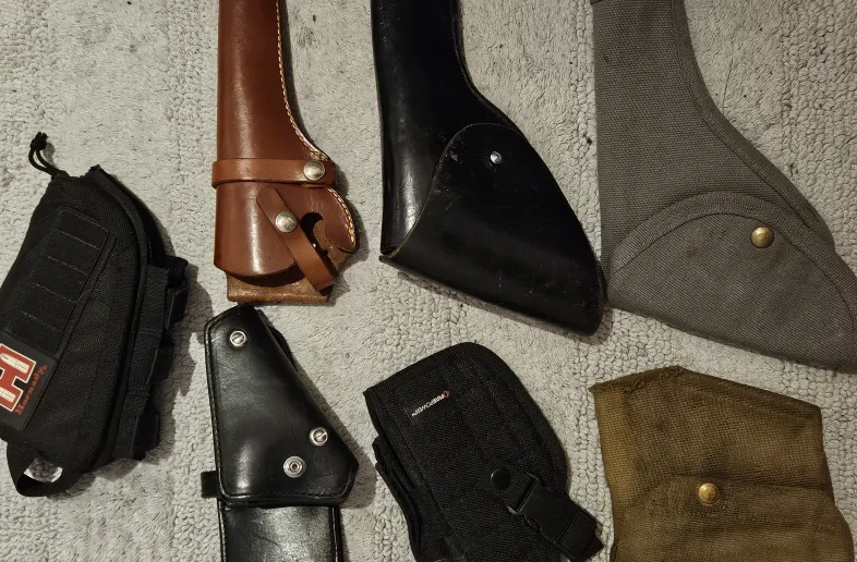 Selling everything as a lot, 6 pistol holsters and a Hornady Rifle Cheek Piece/Ammo Pouch. Tho of the holsters are British/Commonwealt WW2(possibly Webley) one is in good condition while the other is cut at bottom. One leather I believe to be for a 1911 possibly. Unsure what the other holsters are for. Anyways selling everything for one low price. No trades, no shippin, no Gunpost messages only text or call (204)290-9085