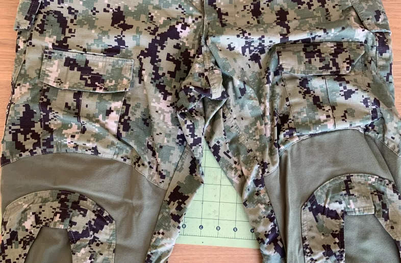 Minimal indoor use. Look new otherwise - with no stains or damage. No knee pads included. Pants were a bit loose fitting for me.