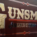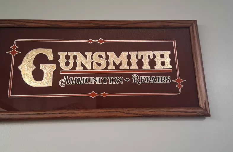 New artwork. Reverse painted, glue chipped lettering. Gold leaf (imitation gold leaf) accented. 17 1/2 x 8 1/2 inches framed in oak.
