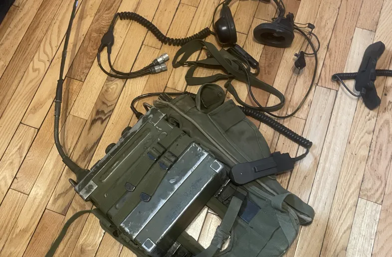Cool, Cold War era manpack comms as used by the U.S. military and many others. A staple of the Vietnam war, these radio sets were robust and reasonably reliable field comms. This one is complete with harness, battery cover and the handset and headset as well as accessory bag with tall antenna. Whip antenna is attached as pictured. Years ago, I fired this one up off an OG rechargeable battery, so I know it powers up, but I have no idea about sending receiving as I never tried.