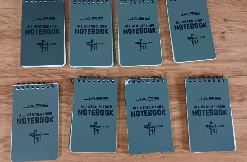 Selling 10 Jase All-Weather Lined Spiral-bound Notebooks, containing 50 pages. Each page is treated and lined to resist the elements including water from rain or other sources. Great for outdoor use.