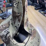 Chocolate chip camo $40 brand is premuim quality country leather. Nice little sun flap and adjustable chin strap the sides can clip in making it a more compact if needed. Quality in this hat. Didn't skip on stitching or button placement.