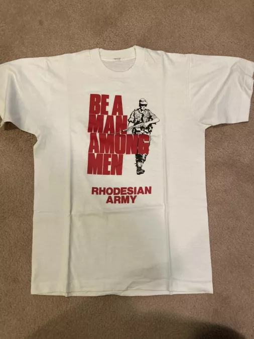 I have 2 Rhodesian t-shirts , $40 each, see photos, in good condition, size mediumish. Located in Ottawa for free local pickup or buyer pays shipping.