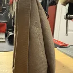 Works well as a front or rear bag. A little light for my personal preference. One strap has a small tear but 100% functional.