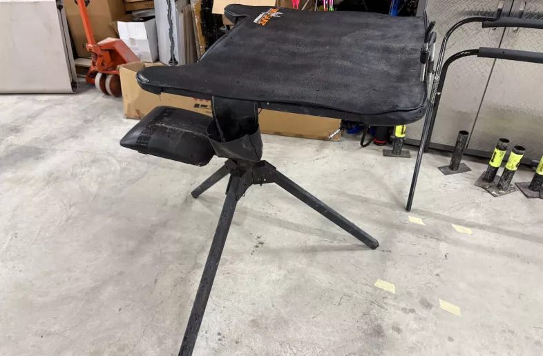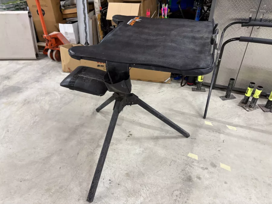 Selling/trading a Big Game Deluxe shooting bench. Overall it's in fair shape. Shows some weathering on the leather. Seat has a tape repair, top table layer is starting to curl up a bit on the edges. Sets up easy and comes with an adjustable stand as seen. Adjustable for left or right handed shooters. Looking for $200. Open to all trades. Can send more pictures upon request. Pm or text/call 204 795 2850 for more info.