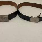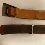 The West German belt is made of a harder leather and has a few subtle stretch marks.