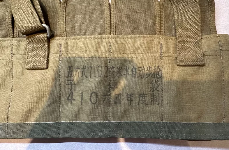 Authentic chest rig for Type 56 Semi-Automatic Rifle (SKS), rather than Type 56 Sub-Machine Gun (AK-47). State-owned manufacturer, made by Factory 410 in 1964.