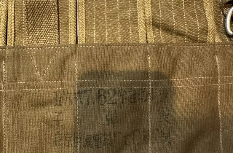 Authentic chest rig for Type 56 Semi-Automatic Rifle (SKS), rather than Type 56 Sub-Machine Gun (AK-47). Commercial contractor, made by Nanjing JuLiu Plastics in 1970.