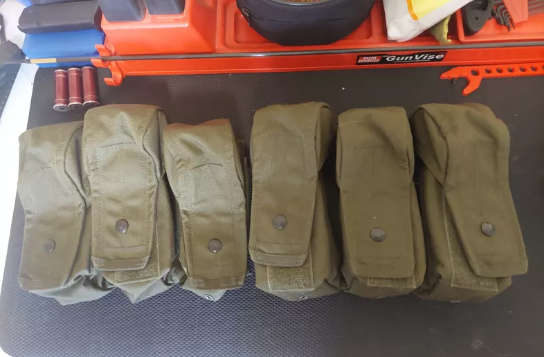 POUCHES - $50 EACH (plus shipping ) Two Blackhawk triple mag pouches. As far as I am aware these are unissued British surplus. I bought them new with tags. They fit 4 STANAGS or 3 AK/T81/VZ mags per cell. So you can rock 12 STANAGS or 9 AK/T81VZ mags per pouch. Ammo galore!