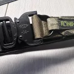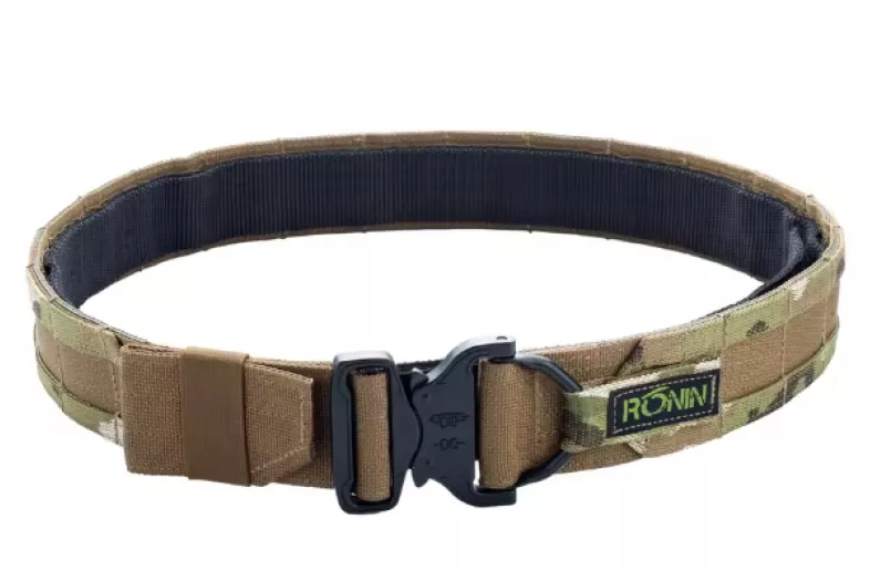 The setup has an inner belt to thread through your favorite pants, then the outer belt velcros to it. Cobra buckle, 1.5" thick, Coyote brown with Multi-cam webbing. Very nice setup for a repo and not breaking the bank.