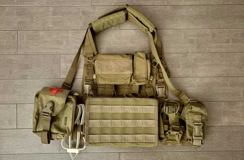 Newest model of SORD chest rig. Front flap folder and X harnest.