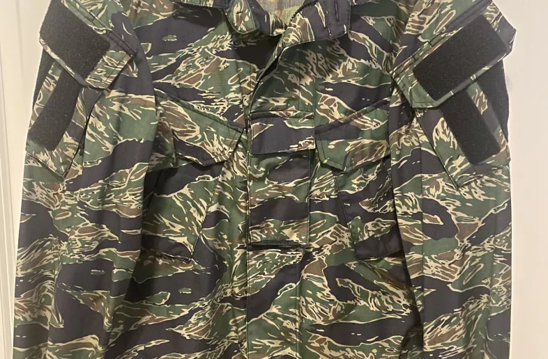 Like new, worn once, Platatac Kurz combat shirt in Vietnam Tiger Stripe, size medium regular. $175 plus shipping. Face to face Kamloops, Merritt, BC Lower Mainland.