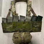 This is a great chest rig to carry a lot of mags, admin stuff, and more. I've put in a triple mag insert, 2 double mag inserts and 3 AXL advanced zipper inserts, so this rig is ready to go when you get it, but its also got MOLLE slots in the front for you to add whatever else you like. Its also got the Reinforced H Harness from Tracer Tactical, for when you want to load up a lot of things and it gets heavy.