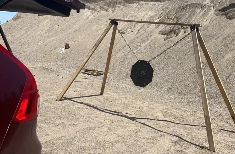 For sale is my 24” octo-gong made from half inch AR500. I have never ever seen a gong this size before, I snagged it before it disappeared forever! Bought from the states about 8 years ago. Shot at only twice so it’s basically brand new! The brackets that hold it all up are from range rabbit (I’m pretty sure that’s where I got them). Uses 2x4s for the framing and heavy chains to hang the gong. Super stable, perfect for long range shooting! Never painted the gong or brackets, everything is in perfect condition. Because of the weight of everything shipping would be pretty expensive, but I’ll ship it on your dime. Send me any questions you might have.