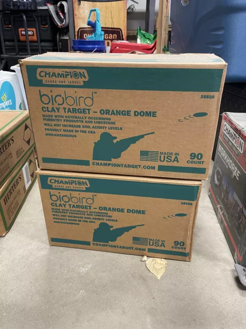 Champion Workhorse. Never been used. Was taken out of the box to see if it functioned (which it did). Original box, instructions and accessories included, as well as 2 boxes of clay targets.